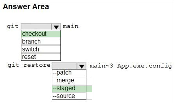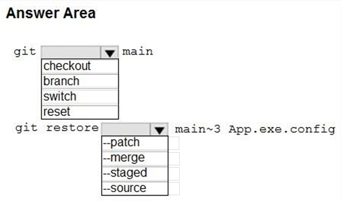 In the main branch, you need to restore the third most recent revision of a file named App.exe.config.