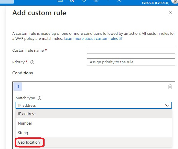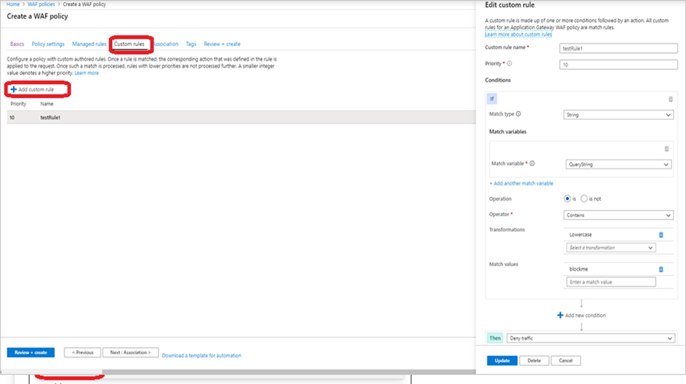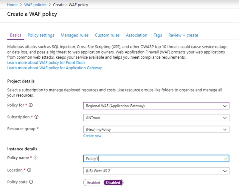 You need to configure a policy that can be used by an Azure application gateway to protect against known web attack vectors. The policy must only allow requests that originate from IP addresses in Canada. You do NOT need to create the application gateway to complete this task.