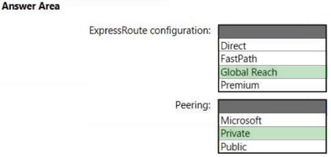 You need to ensure that all the data sent between the datacenters is routed via the ExpressRoute circuits. The solution must minimize costs.