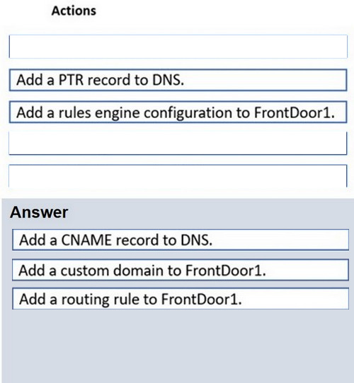 You plan to provide access to the web app through FrontDoor1 by using the name app1.contoso.com.