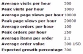The Client is Crowing and decided to migrate its ecommerce website to B2C Commerce. The Client provided the Architect with the f metrics for its existing website over the past 12 months and forecasted into the next year: