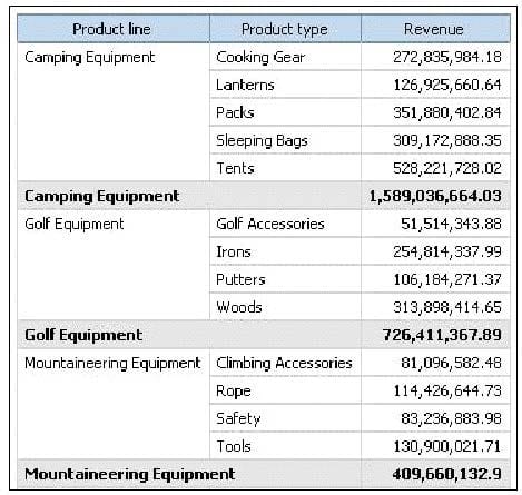 An author wants to create a flter on this report to only show Product line totals larger than 1 billion.