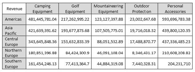 The author wants to split the revenue for each region by year. Where should the year data item be added?