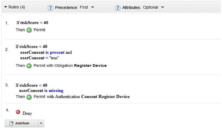 A deployment professional has created an Access Control Policy to protect sensitive business information: Which Policy decision is returned for a user with a risk score of 35 and has consented to registering a device?