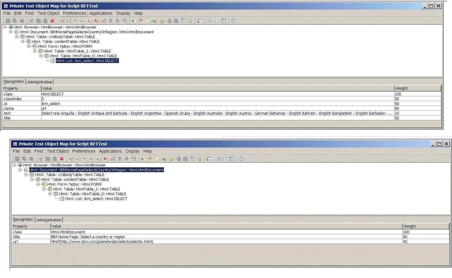 A script needs to perform an action on an HTML List object. Figure 6.1 shows the recognition properties of the list object. Figure 6.2 shows the recognition properties of the HTML document.