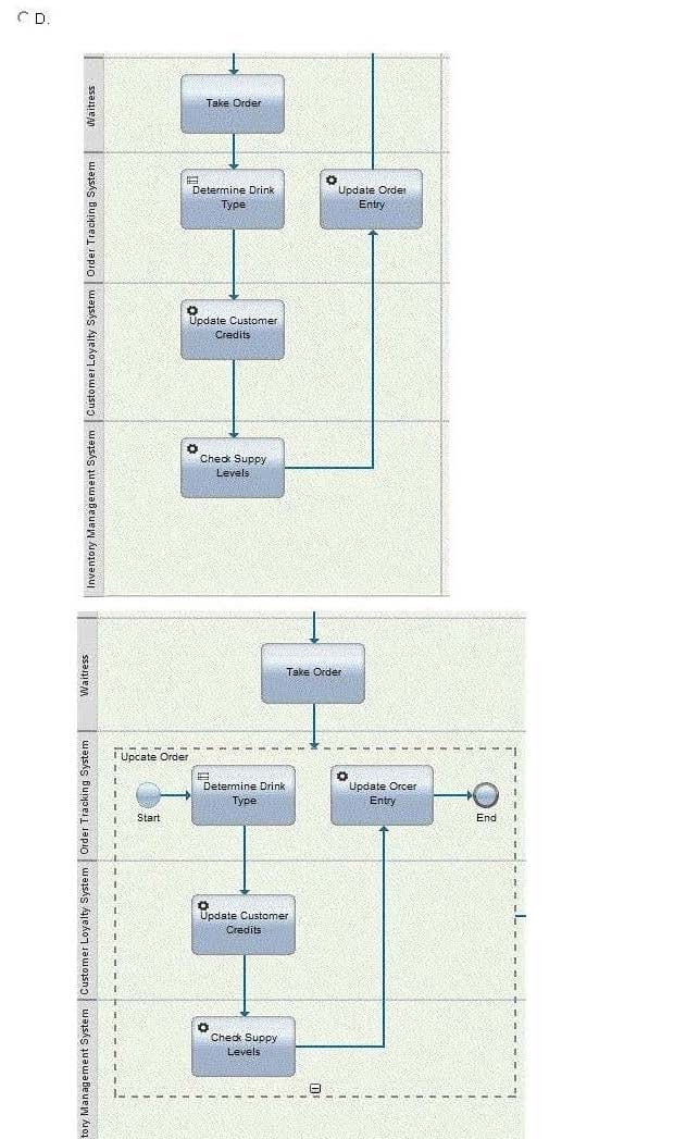 A BPM analyst has modeled the process for creating a custom coffee beverage. The BPM analyst noticed a lot of detail in the process model and has started refactoring the model to reduce the complexity.