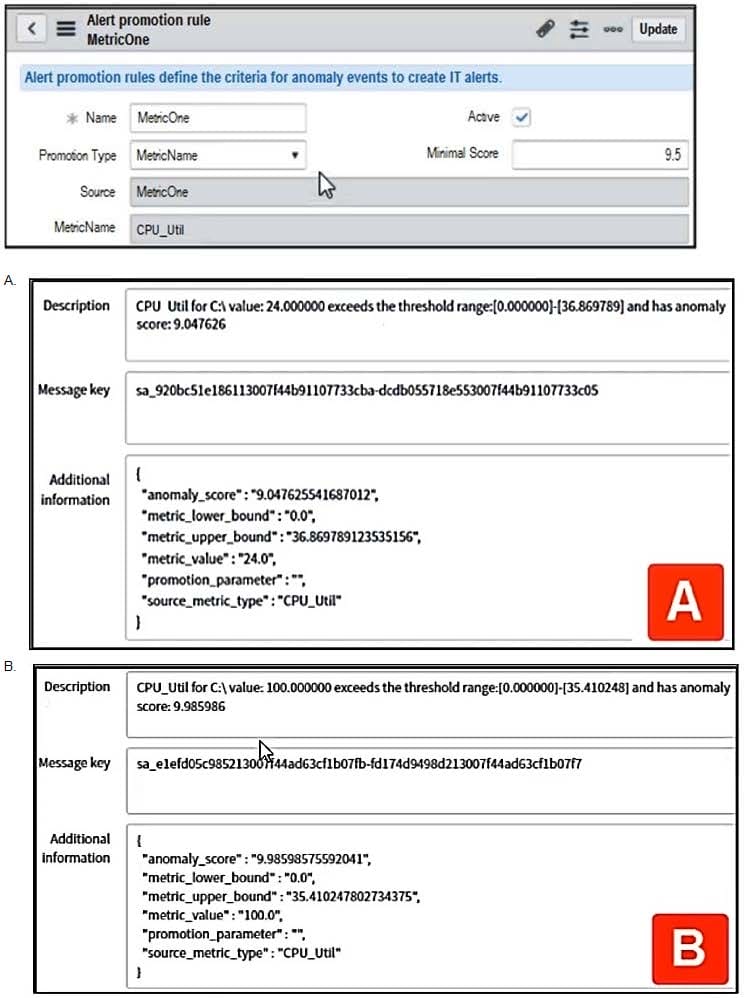 Which the following alert promotion rule defined in your ServiceNow instance, which of the anomalies below would be automatically promoted into IT alerts on the Alert Console?