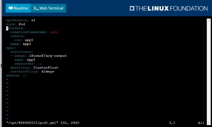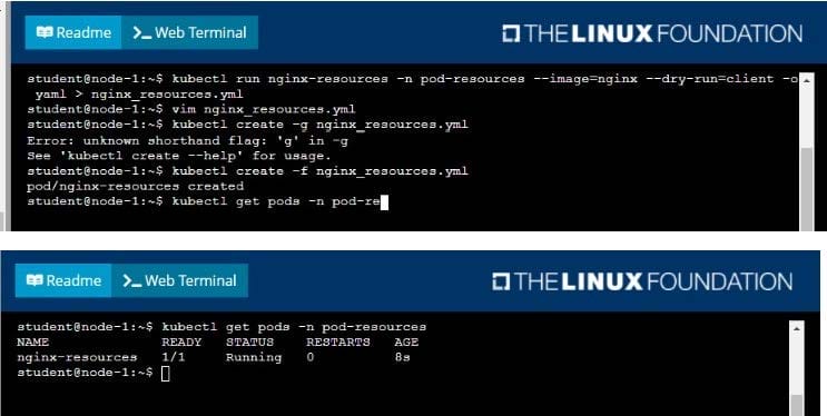 Create the pod with the kubect1 command using the YAML file created in the previous step