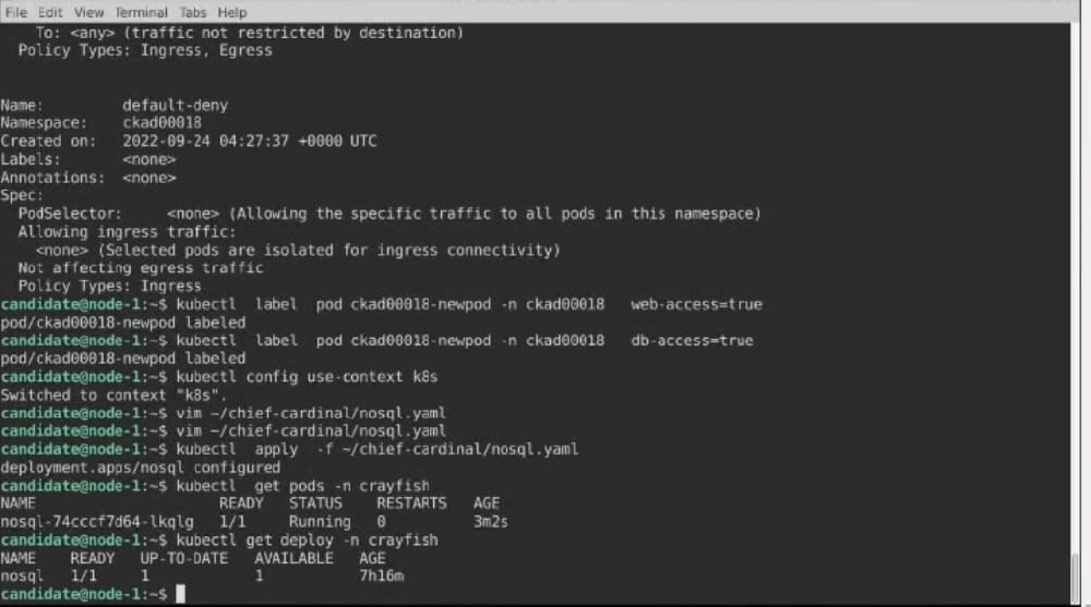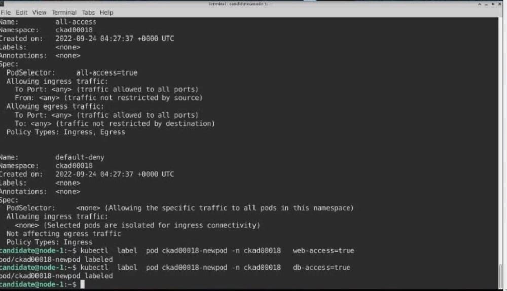 Update the Pod ckad00018-newpod in the ckad00018 namespace to use a NetworkPolicy allowing the Pod to send and receive traffic only to and from the pods web and db