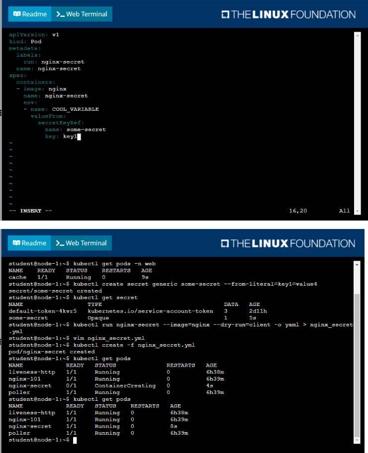 Context You are tasked to create a secret and consume the secret in a pod using environment variables as follow: Task