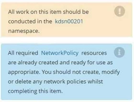 You have rolled out a new pod to your infrastructure and now you need to allow it to communicate with the web and storage pods but nothing else. Given the running pod kdsn00201 -newpod edit it to use a network policy that will allow it to send and receive traffic only to and from the web and storage pods.