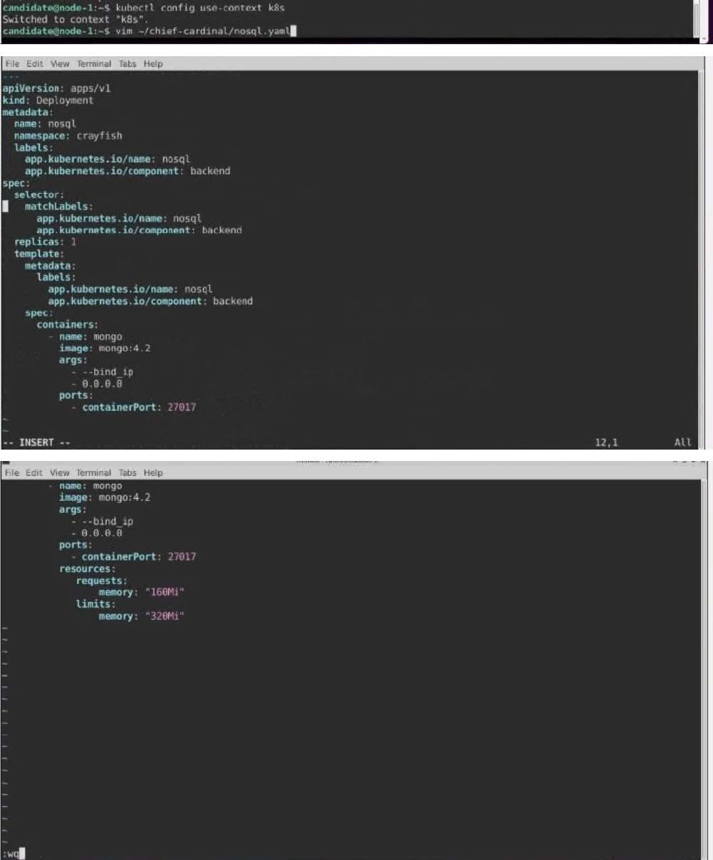 You are required to create a pod that requests a certain amount of CPU and memory, so it gets scheduled to-a node that has those resources available.