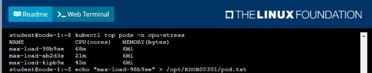 From the pods running in namespace cpu-stress, write the name only of the pod that is consuming the most CPU to file /opt/KDOBG030l/pod.txt, which has already been created.
