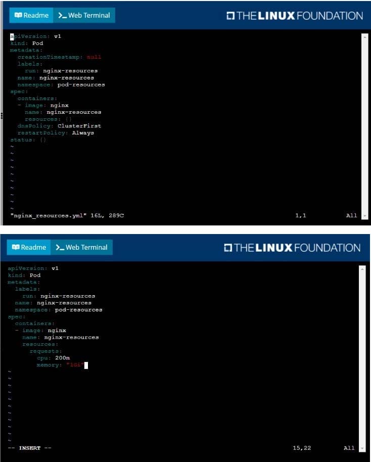 Create a pod named nginx-resources in the pod-resources namespace that requests a minimum of 200m CPU and 1Gi memory for its container