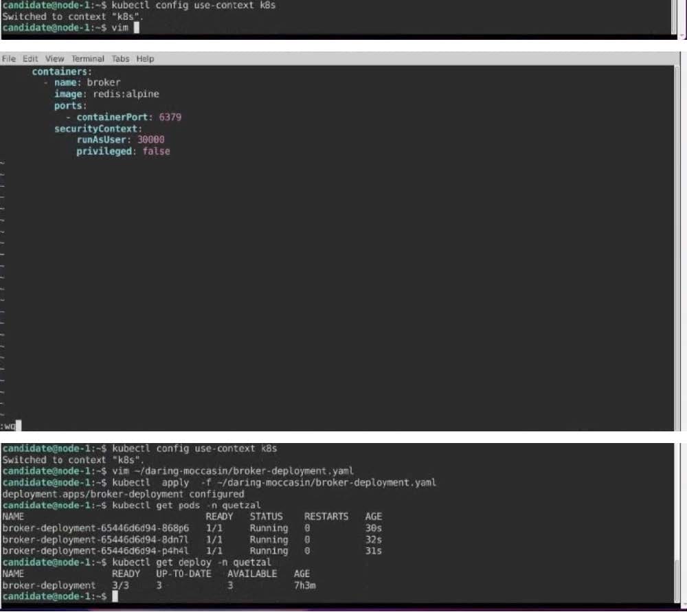 Modify the existing Deployment named broker-deployment running in namespace quetzal so that its containers.