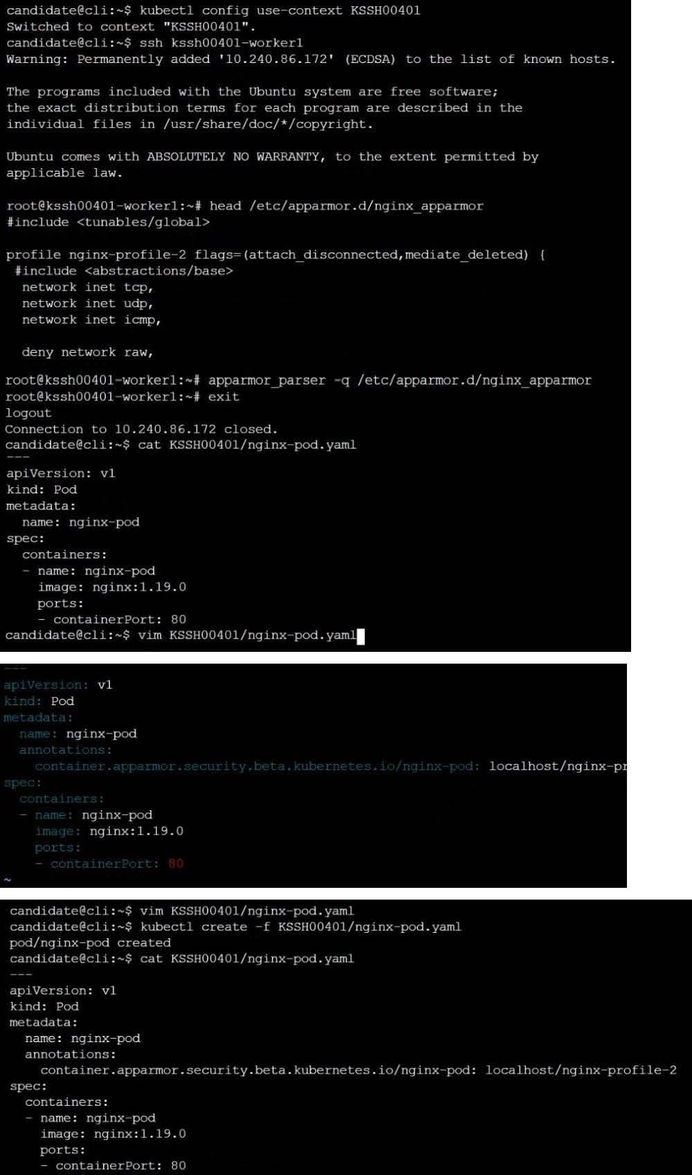 On the Cluster worker node, enforce the prepared AppArmor profile