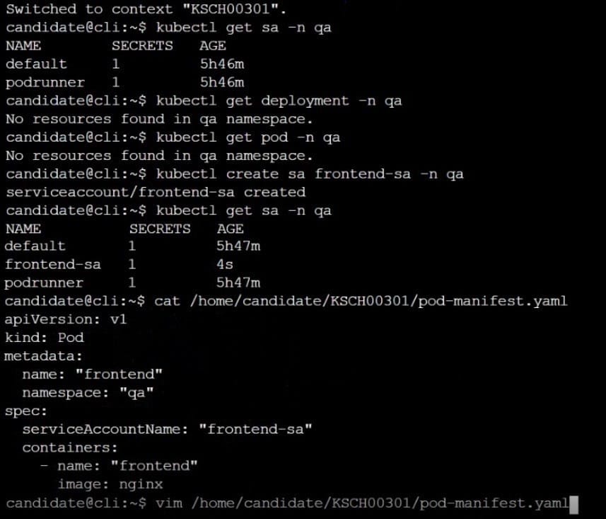Create a new ServiceAccount named psp-sa in the namespace default.