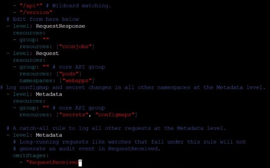 Reconfigure the cluster's Kubernetes API server to ensure that only authenticated and authorized REST requests are allowed.