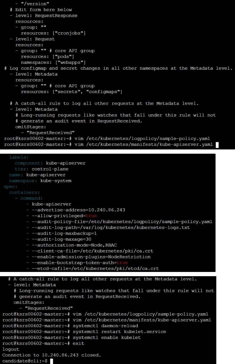 Fix all issues via configuration and restart the affected components to ensure the new setting takes effect. Fix all of the following violations that were found against the API server: