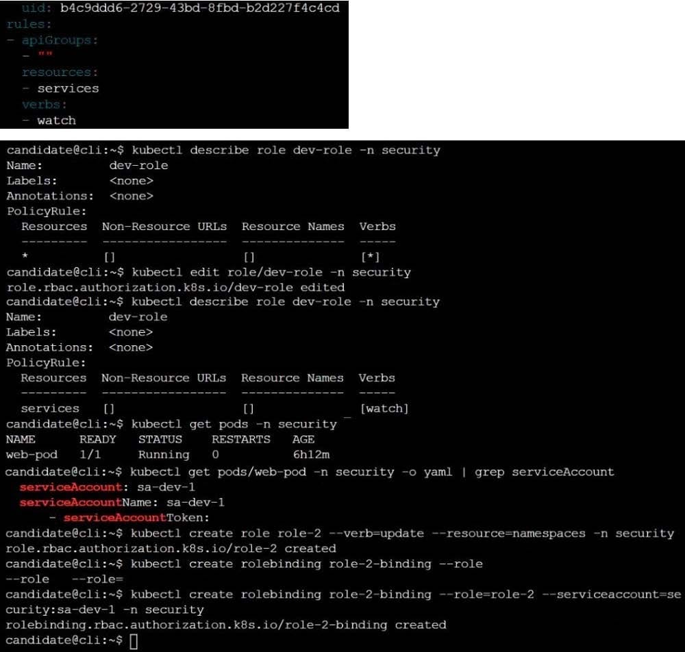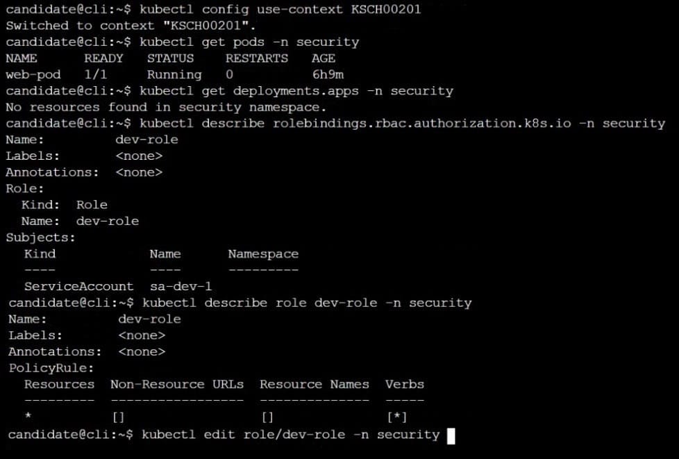 A Role bound to a Pod's ServiceAccount grants overly permissive permissions. Complete the following tasks to reduce the set of permissions.