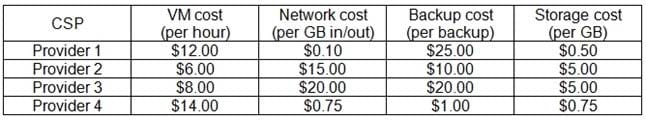 A startup company that provides streaming media services is considering a new CSP. The company sees an average volume of 5000TB daily and high QoS. It has received the following bids: