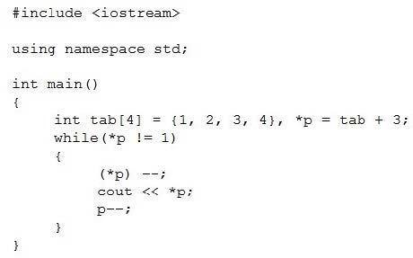 B() { tab = new int[size]; for (int i=0; i B(string s) : A(s) { tab = new int[size]; for (int i=0; i ~B() { delete tab; } void Print() { for (int i=0; i cout << name; } }; int main () { B b1("Alan"); B b2; b1.tab[0]=0; b1.Print(); b2.Print(); return 0; } A. It prints: Alan B. It prints: 111 C. It prints: 011Alan111Bob D. It prints: 0