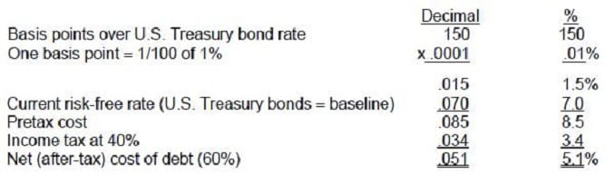 ABC Corporation can now issue debt at 150 basis points over U.S. treasury bonds.