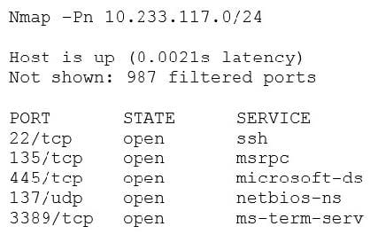 A security analyst scanned an internal company subnet and discovered a host with the following Nmap output.