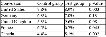 A. In Germany, the increase in conversion from the new layout was not significant.