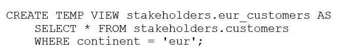 A. The view remains available and SELECT * FROM stakeholders.eur_customers will execute correctly.
