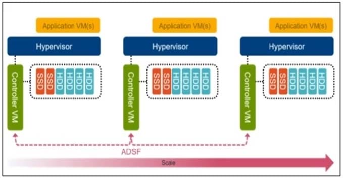 Which EMC Hyper-Converged system has an architecture based on modular building blocks, enabling deployments to be scaled linearly from 1 to 32 appliances using customer network switches?