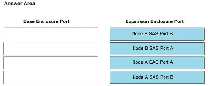 Match the correct Base Enclosure port in column A to the Expansion Enclosure port in column B to show the correct cabling for adding a single expansion enclosure to a base enclosure.