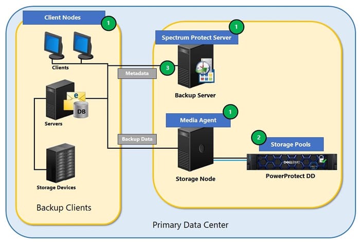 A PowerProtect DD appliance with two expansion shelves is being installed in a customer-provided rack.