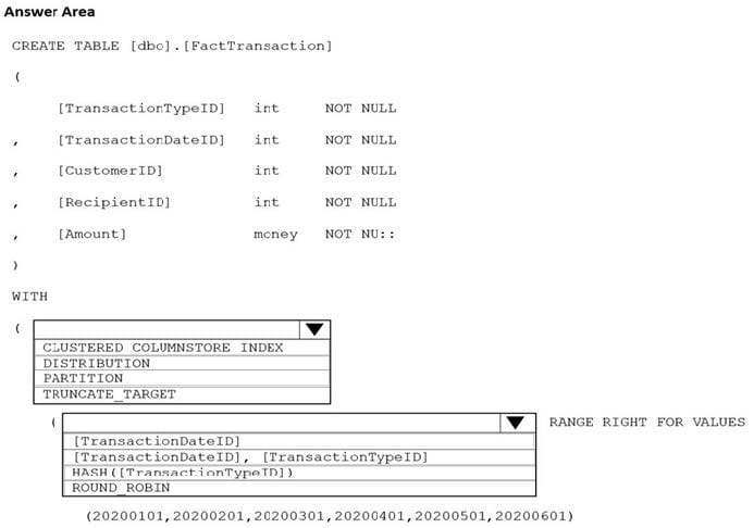 You are building an Azure Synapse Analytics dedicated SQL pool that will contain a fact table for transactions from the first half of the year 2020.