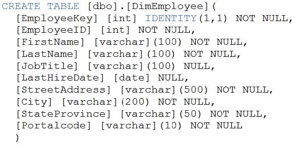 You have a table in an Azure Synapse Analytics dedicated SQL pool. The table was created by using the following Transact-SQL statement.