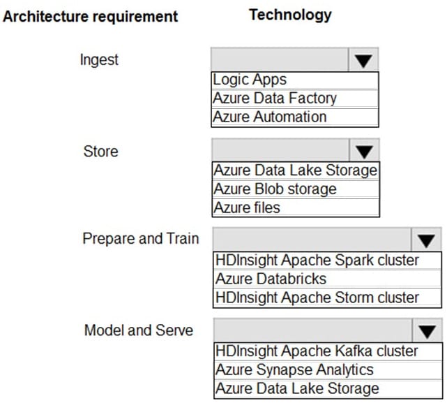 Which technologies should you use? To answer, select the appropriate options in the answer area.