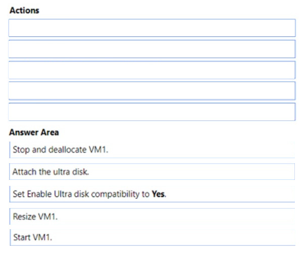 In which order should you perform the actions? To answer, move all actions from the list of actions to the answer area and arrange them in the correct order.