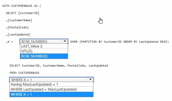 You have a data warehouse that contains a table named Stage. Customers. Stage-Customers contains all the customer record updates from a customer relationship management (CRM) system. There can be multiple updates per customer