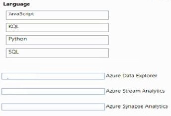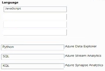 Match the data processing languages to the appropriate real-time analytics services.