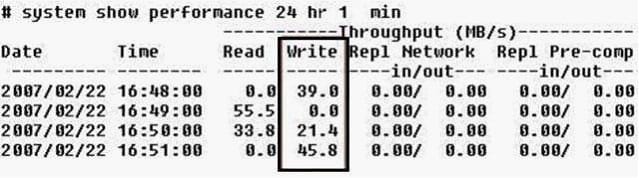 When looking at the output from system show performance as illustrated in the exhibit, what does the information outlined in the box represent?