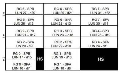 A customer has three SAS DAEs configured with eight 4+1 RAID 5 Groups (RG) and six Hot Spares as shown in the exhibit. All RGs are unused except for RG 0, which contains the Control LUNs. All LUNs except for those in RG 0 are the same size.
