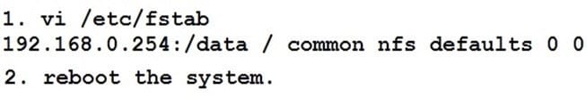 You are working as an Administrator. There is a common data shared (/data) from 192.168.0.254 to all users in your local LAN. When user's system start, shared data should automatically mount on /common directory.