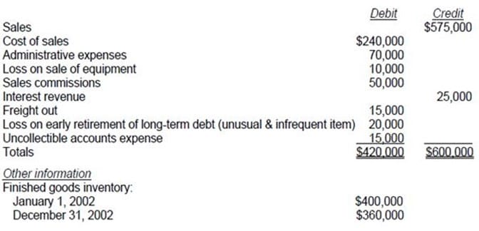 Vane Co.'s trial balance of income statement accounts for the year ended December 31, 2002, included