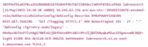 Below is an extract from a Server Access Log showing arecord for a request made to an AWS S3 bucket. What does the first field starting with "385f9e" represent?