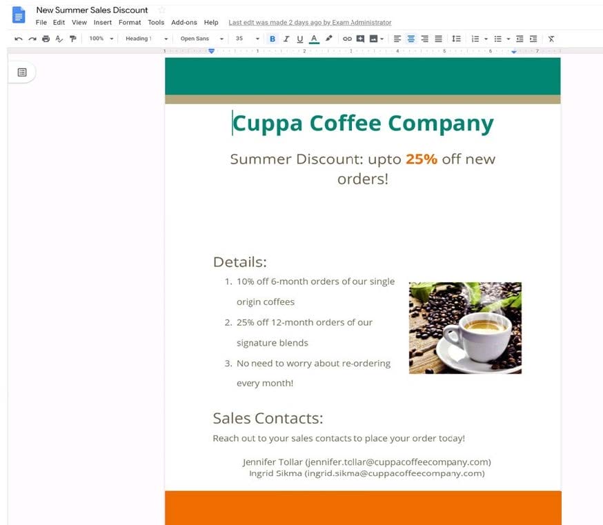 Overview Your company is offering a new summer discount for its customers. In the following questions, take actions to update the New Summer Sales Discount that your sale representatives will share with customers.