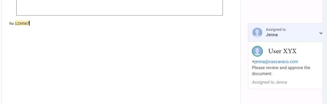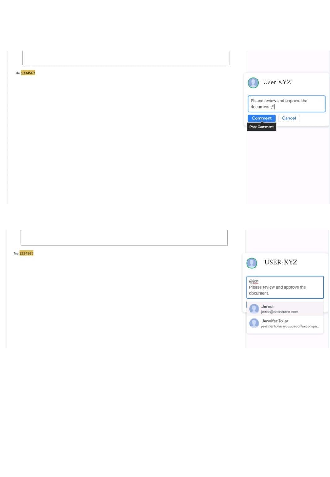 Add a comment and attach it to No 1234567 at the bottom of page 2. Address the comment to [email protected]. The comment should say Please review and approve the document.