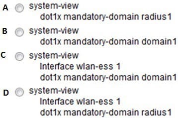 A network administrator configures 802.1X authentication on a wireless network set with an HP 830 Unified Wired-Wireless Controller. The administrator configures a RADIUS scheme named radius1 and a Domain scheme name domain1. Which other configuration will enable 802.1X?