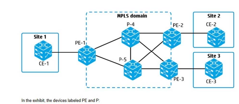 VPN traffic is using the link between PE-1 and P-4, and this link fails.