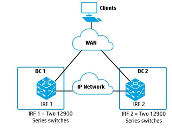 D. Combine IRF 1 and IRF 2 into the same IRF virtual device, and set up routing on that device