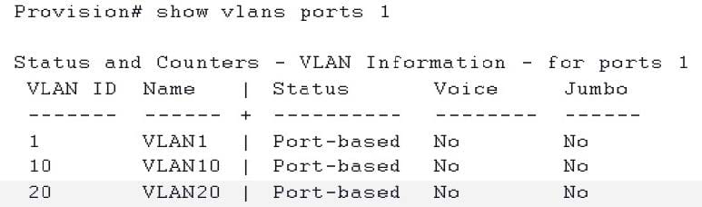 A network administrator enters the command shown in the exhibit to check the VLANs on an HP ProVision switch interface. The administrator wants to discover which VLANs are tagged and untagged on the port. What can the administrator do to accomplish this?